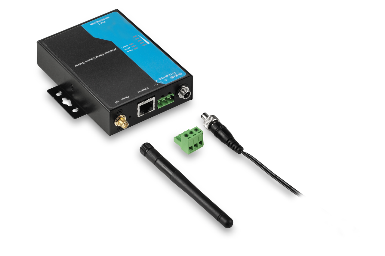 Pregiato adattatore per il collegamento senza cavo di bilance, strumenti di misura per forze ecc. con interfaccia RS-232 idonea per apparecchi WLAN, quali tablet, laptop,smartphone o reti. I dati di pesata da una o più bilance, in caso di separazione spaziale o grandi distanze, possono essere stampati comodamente senza l’utilizzo di cavi, tramite una stampante bluetooth o essere trasmessi a un dispositivo bluetooth (il corrispondente software sul dispositivo bluetooth non è in dotazione). L’adattatore consente l’integrazione diretta degli strumenti di misura nella maggior parte delle reti aziendali, con configurazione automatica tramite DHCP o assegnazione di IP statico. L’accesso ai dati di misura attuali è possibile in qualsiasi momento dall’intera rete, senza dover posare cavi aggiuntivi.. L’adattatore supporta molteplici possibilità di configurazione tramite il software di amministrazione accluso oppure tramite interfaccia Web.. Il driver in dotazione fornisce l’accesso allo strumento di misurazione con applicazioni esistenti non collegabili in rete tramite una porta COM virtuale. Compatibile con KERN Software BalanceConnection. L’adattatore dispone anche di un’interfaccia Ethernet per un collegamento via cavo ad una rete Ethernet basata su IP. L’alimentazione elettrica può essere realizzata tramite morsetti a vite singolarmente sui singoli conduttori oppure tramite il solido collegamento di rete avvitato.. Ampio range di tensione di ingresso da 12 V-48 V. Adatto per il montaggio su guide DIN o a parete oppure free-standing.