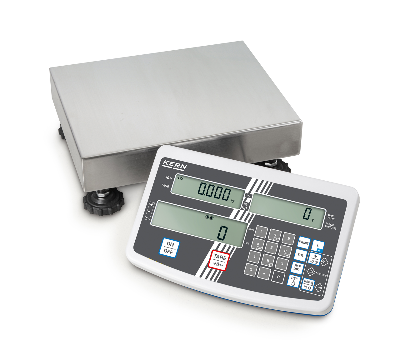 - Tre display per visualizzazione del peso, peso di riferimento e peso complessivo