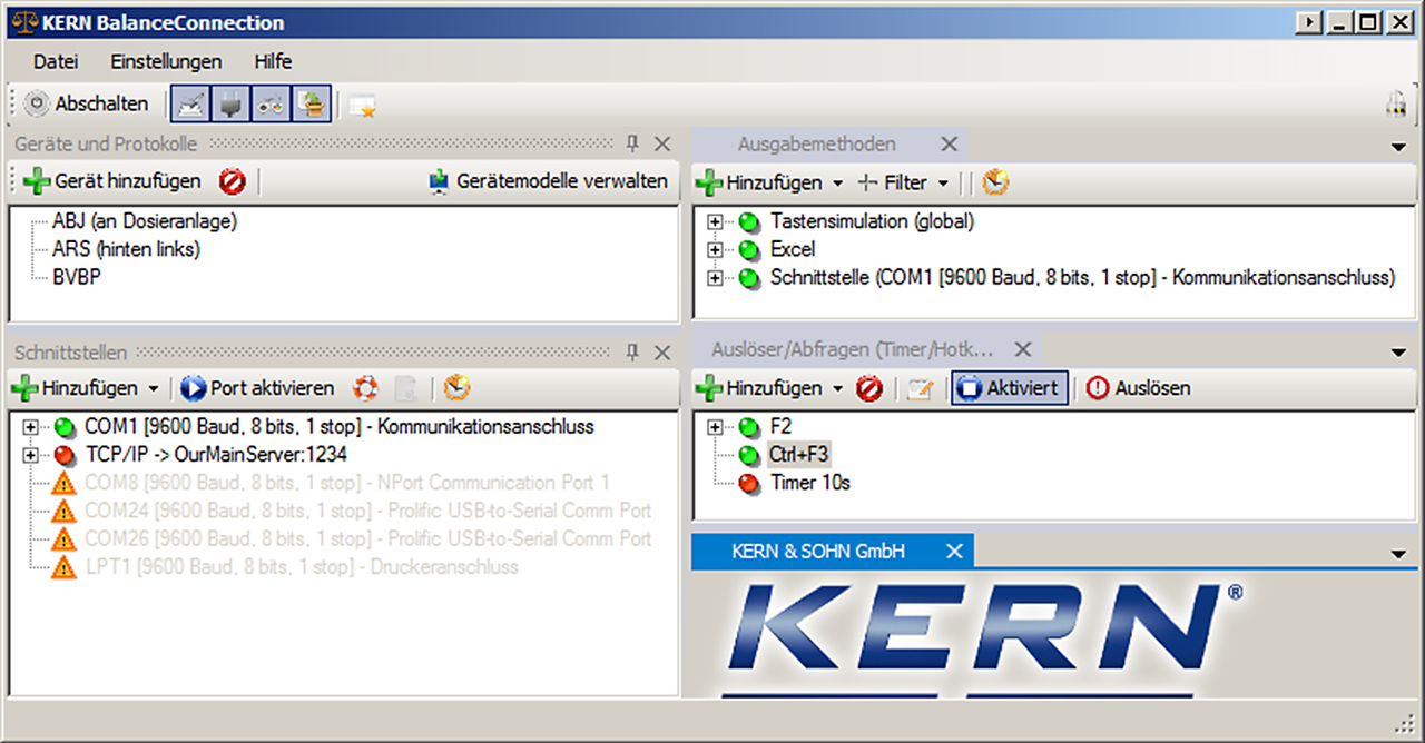 - I protocolli di interfaccia delle bilance KERN (configurazione standard) sono già predefiniti. Possibilità di supportare altre bilance grazie alla configurazione flessibile